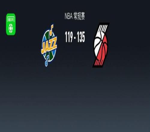第四节爵士米哈伊柳克拿下14分,开拓者格兰特拿下7分,最终爵士119-135不敌开拓者